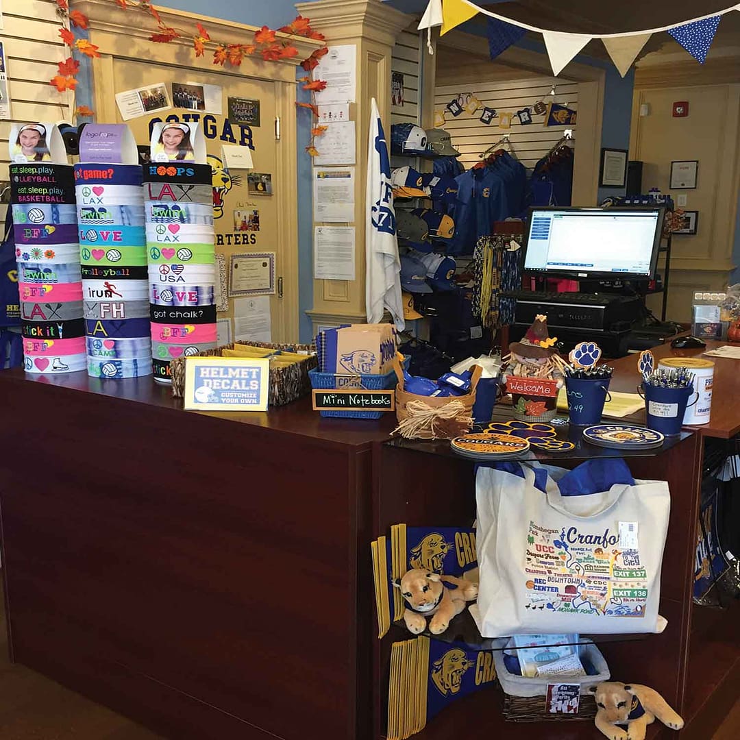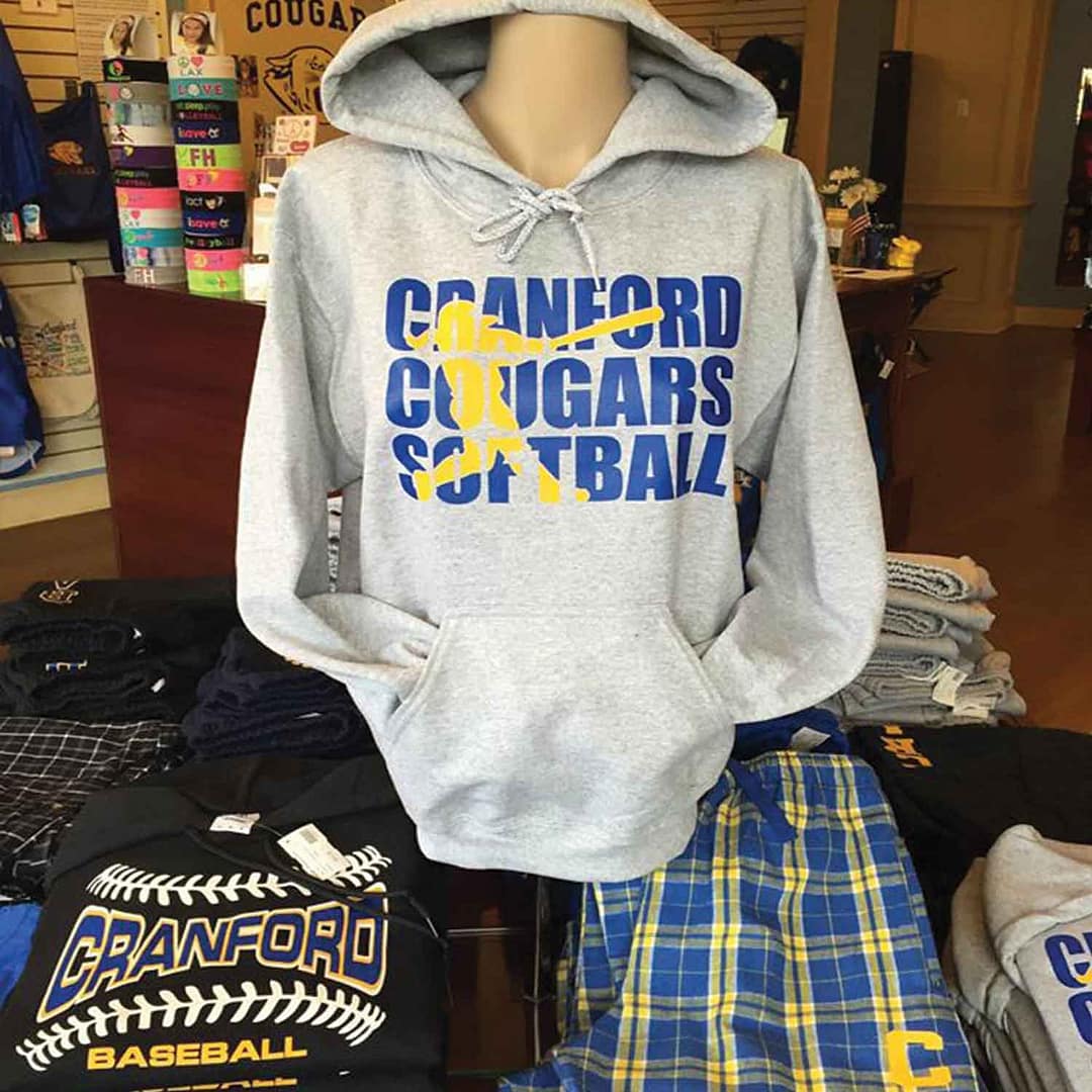 Located on Centennial Ave, Cougar Headquarters offers a retail store of everything Cranford! Here you can find anything from apparel to accessories.CHQ offers a wide variety of shirts, hats, hoodies, magnets, glassware and more!   In addition to our retail offerings CHQ also provides custom varsity jackets, screen-printing & embroidery.